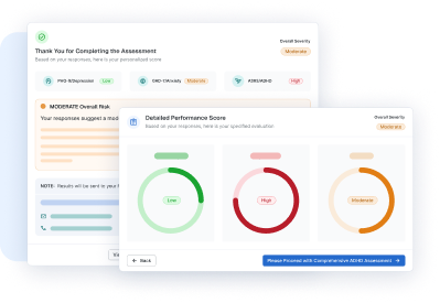 We use the world’s only FDA cleared online ADHD assessment tool that simultaneously measures hyperactivity, inattention, and impulse control. This tool provides clear, objective data about the core symptoms of ADHD. We also use validated rating scales like the ASRS, PHQ-9, and GAD-7, and structured diagnostic interviews. The result: a comprehensive, personalized report that’s fast, clear, and clinically rigorous.