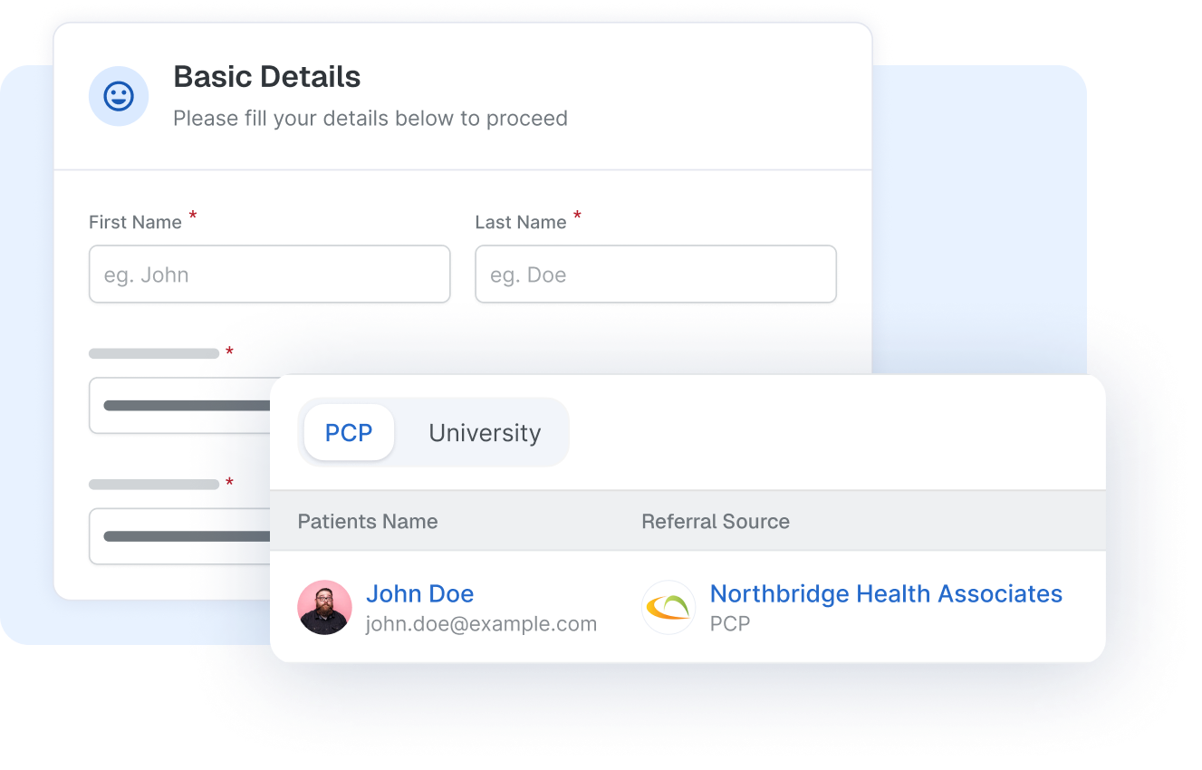 A single, secure process for onboarding referred patients and students from PCPs, universities, or partnered institutions